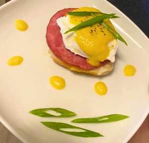 STEP 7. add poached egg + hollandaise drizzle